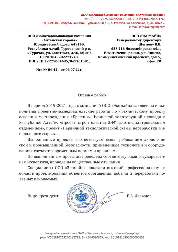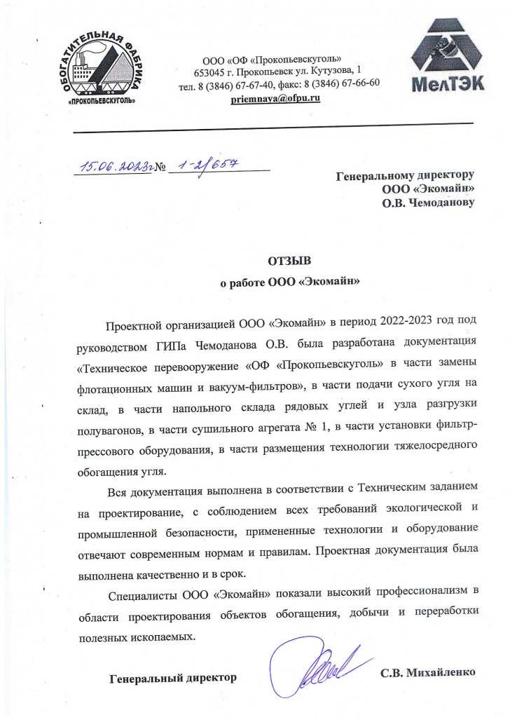 Построенные и эксплуатируемые по нашим проектам производственные объекты имеют самые положительные отзывы от заказчиков и недропользователей, а компания «Экомайн» зарекомендовала себя как надежный и ответственный партнер.